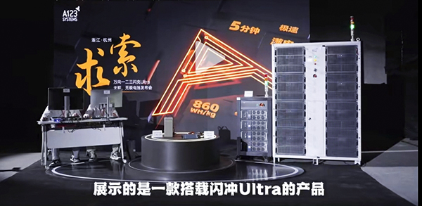 乐鱼体育150V 400A模组充放电测试系统(右一)、乐鱼体育10V300A电芯充放电测试系统(右二)出现在万向一二三12C超高倍率“闪充Ultra电池”发布会视频中
